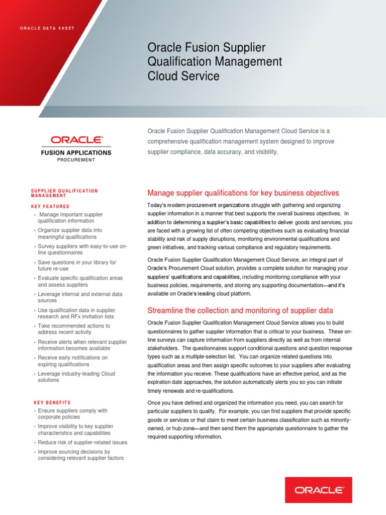 Oracle Fusion Procurement New Standards for Supply Chain Management output in PDF, hardcopy, or Microsoft Word format for consistent printing or email transmission. Oracle Fusion Supplier Portal With Oracle Fusion Supplier Portal, ... Get Content Here